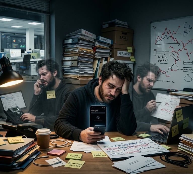 Cada venta, cada mensaje, cada decisión pasa por ti. Si te enfermas, si te desconectas, si quieres descansar… todo se frena.